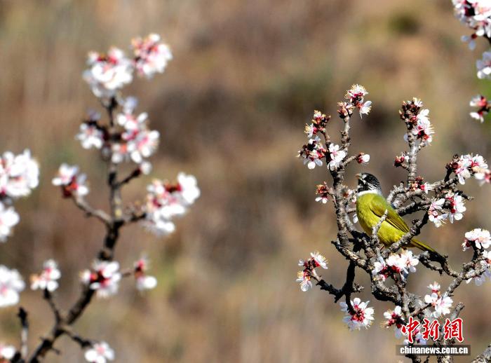 山西万荣孤峰山:杏花绽放 鸟舞春光